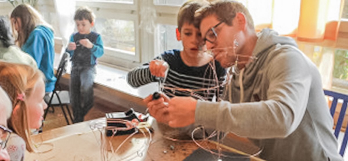 Jedes Vater/Kind(er)-Team baut aus Holz und Rohmaterialien eine eigene Schleuder.