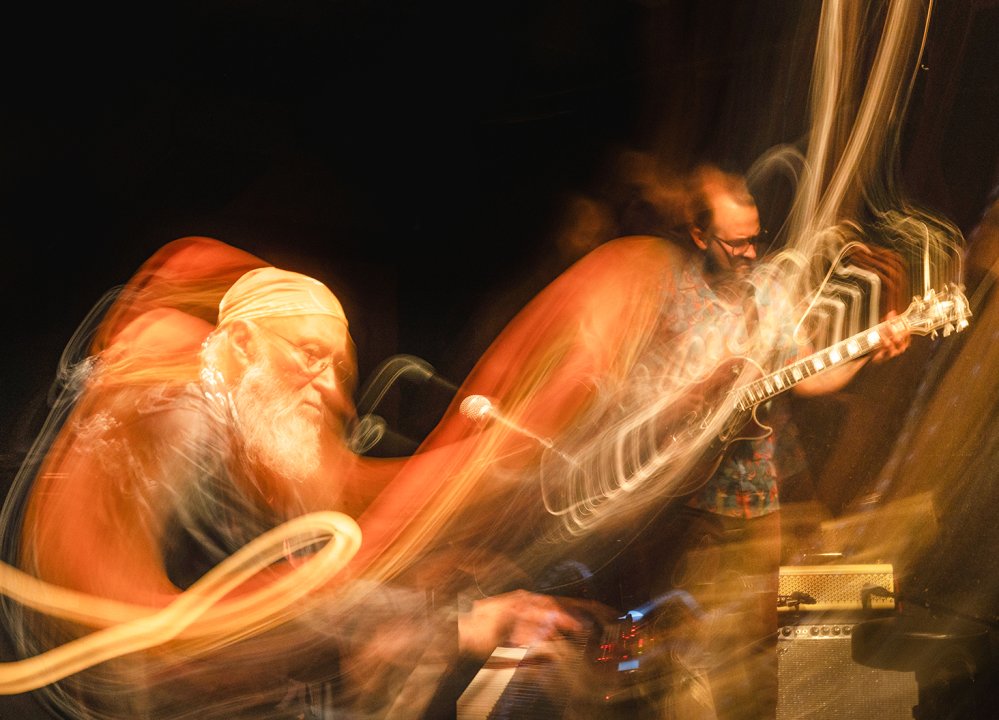 Weltpremiere des neuen Werks von Terry Riley und Gyan Riley im Kulturlokal Werkk, Alte Schmiede. Live gespielt von Gyan Riley und der Neuen Kurkapelle Baden. Tickets: Abendkasse und Eventfrog.