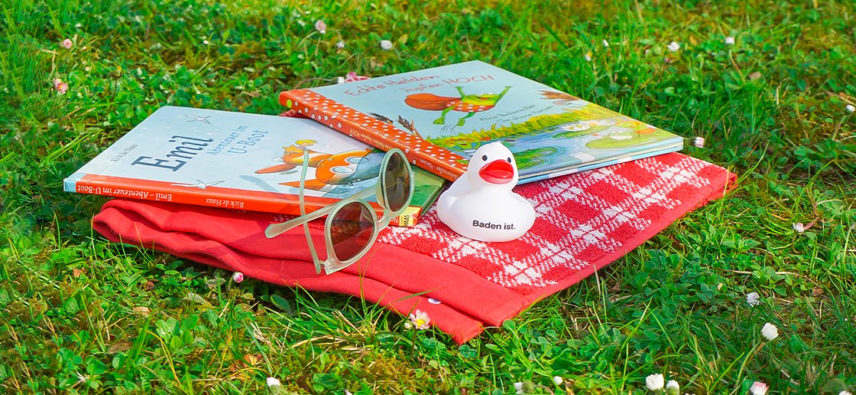 Die Stadtbibliothek Baden liest bei schönem Wetter Bilderbuchgeschichten vor. Jeweils am Mittwoch, Freitag und Sonntag von Juni bis August.