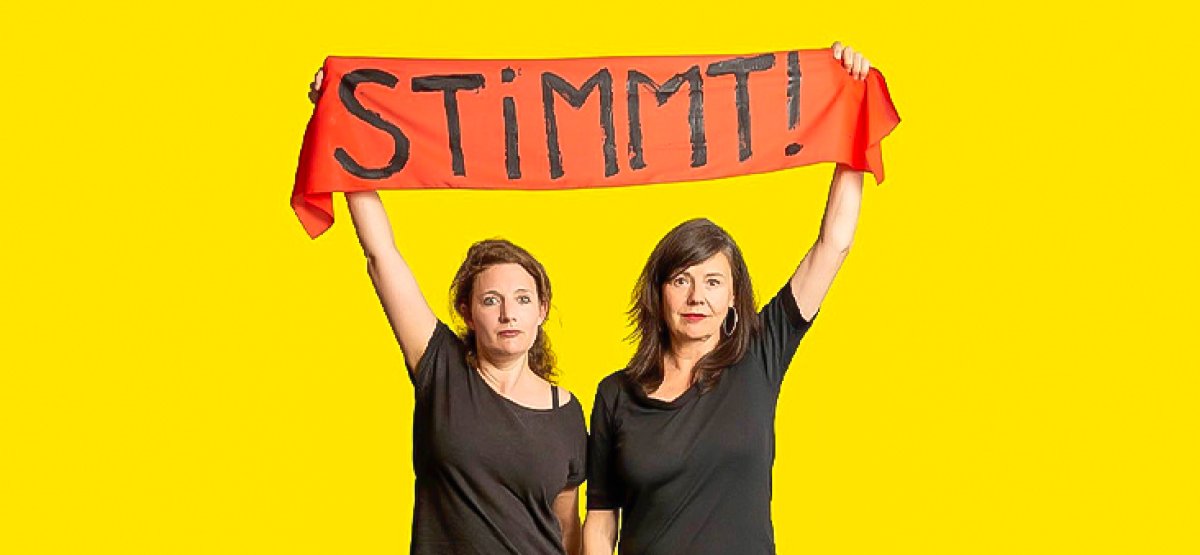 «Stimmt!» – Musika-lisch-theatrale Reise durch die Geschichte der Frau mit viel Sprach-, Wahn- und überhaupt Witz. Mit Sibylle Aeberli und Stefanie Grob.