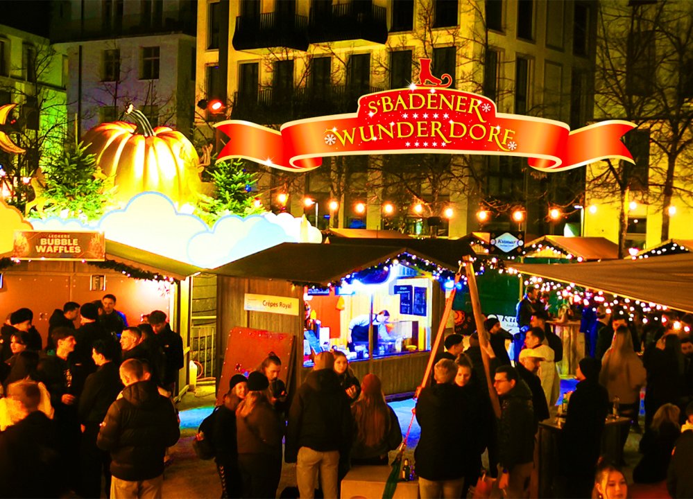 s'Badener WunderDorf ist der schönste Weihnachtsmarkt im Limmattal mit verführerischem Street-Food, vielen gemütlichen Markthütten, Bars, Lounge-Zelt mit Strohballen, Kuschelhäuschen, Gschänkli-Dörfli, dem Terrazza-Zelt mit eigener Bar und vielem mehr.