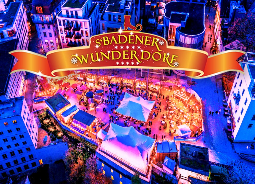 s'Badener WunderDorf beginnt mit Halloween und ist der bezauberndste Weihnachtsmarkt im Limmattal mit verführerischem Street-Food, gemütlichen Markthütten, Bars, Lounge-Zelt mit Strohballen, Kuschelhäuschen, Gschänkli-Dörfli und dem Terrazza-Zelt.