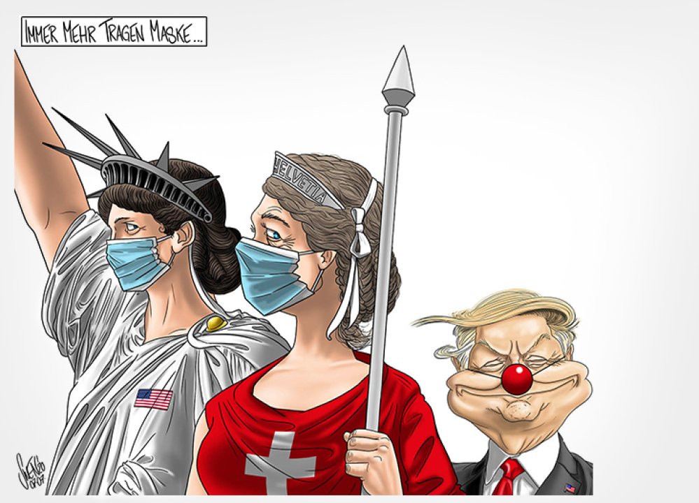 Silvan Wegmann, Cartoonist, im Gespräch mit Markus Stegmann, Direktor Museum Langmatt. Maskenpflicht.
