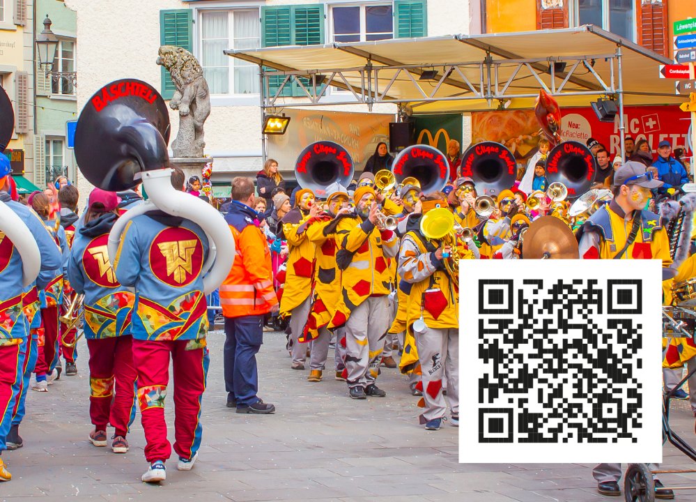 Ein Spektakel für jung und alt. Komm als Zuschauer:in oder mach gleich selber mit. Nummernausgabe und Besammlung Kirchplatz, Schluss Unterer Bahnhofplatz und 15:55 Umzugs-Rangverlesen auf dem Schlossbergplatz.