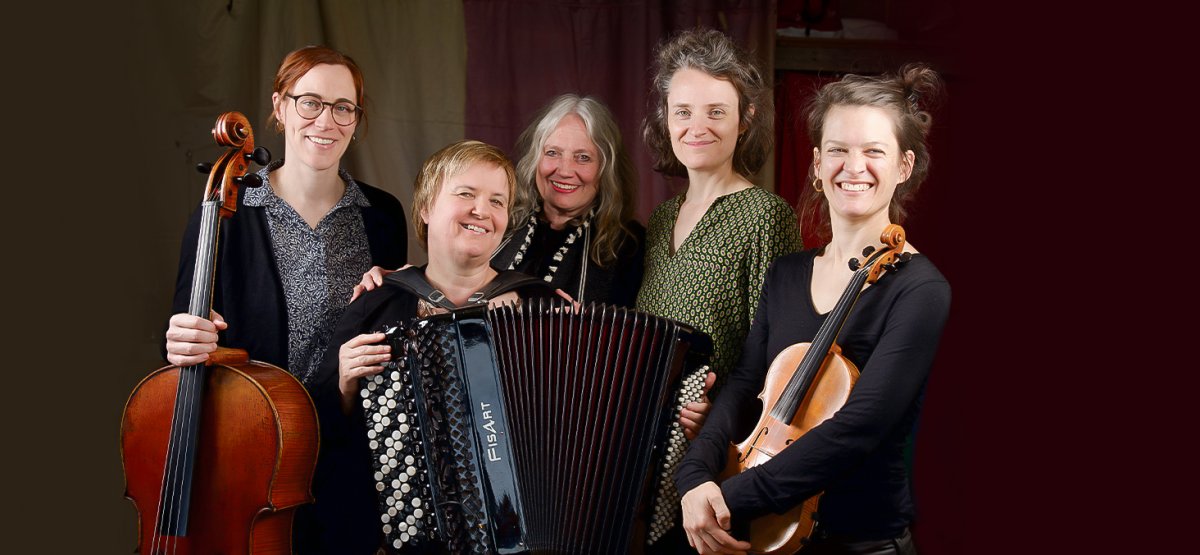 Romanische und rumänische Lieder mit Corin Curschellas (voc), Irina Ungureanu (voc), Patricia Draeger (Akkordeon), Andrea Kirchhofer (Geige), Barbara Gisler (Cello).