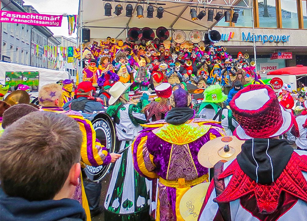 mit vielen Ständen, Fasnachtscliquen und Guggenauftritten. Kinderfasnacht am Nachmittag. Laufend aktualisierte Informationen und Schutzkonzept siehe
